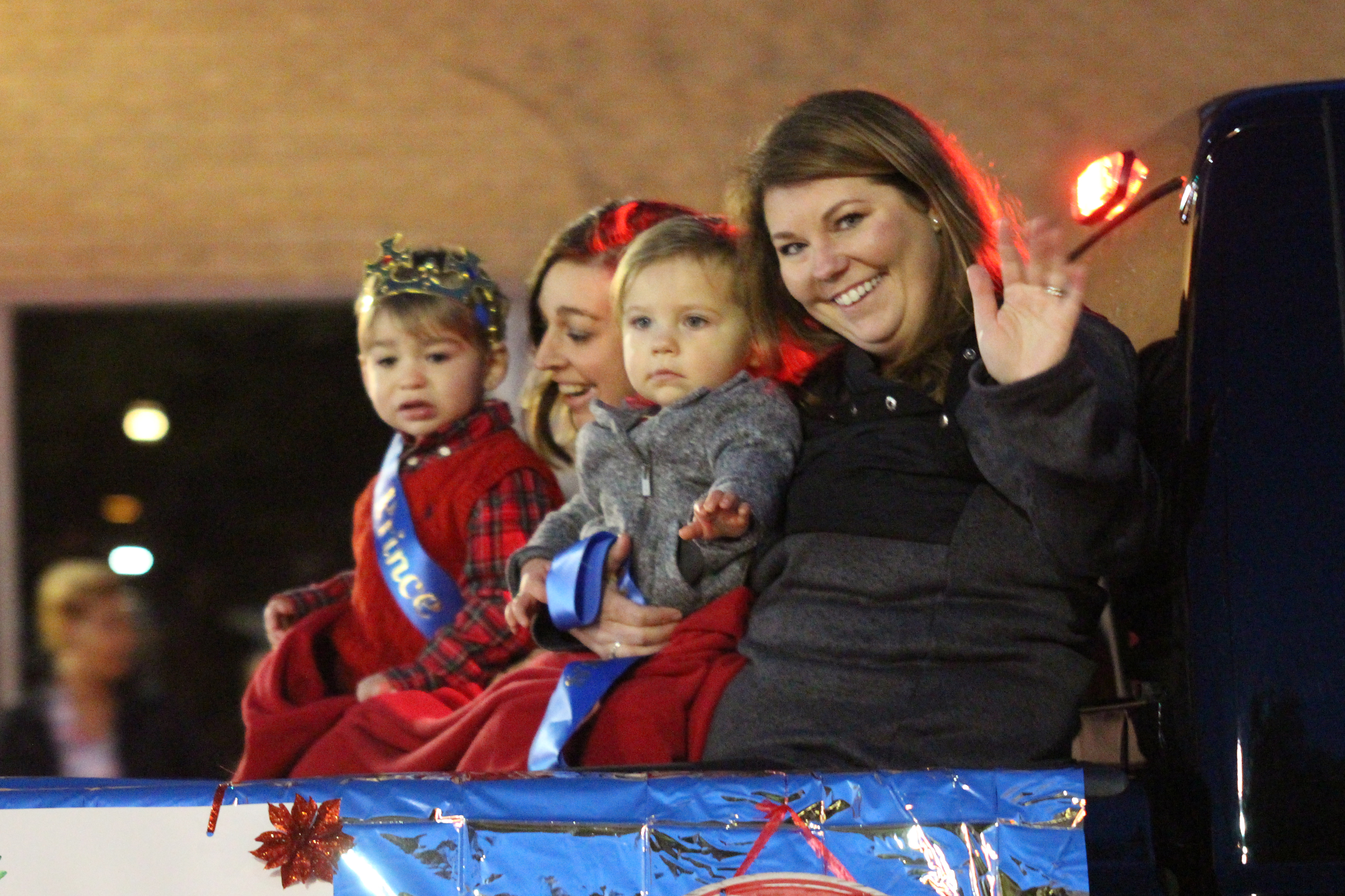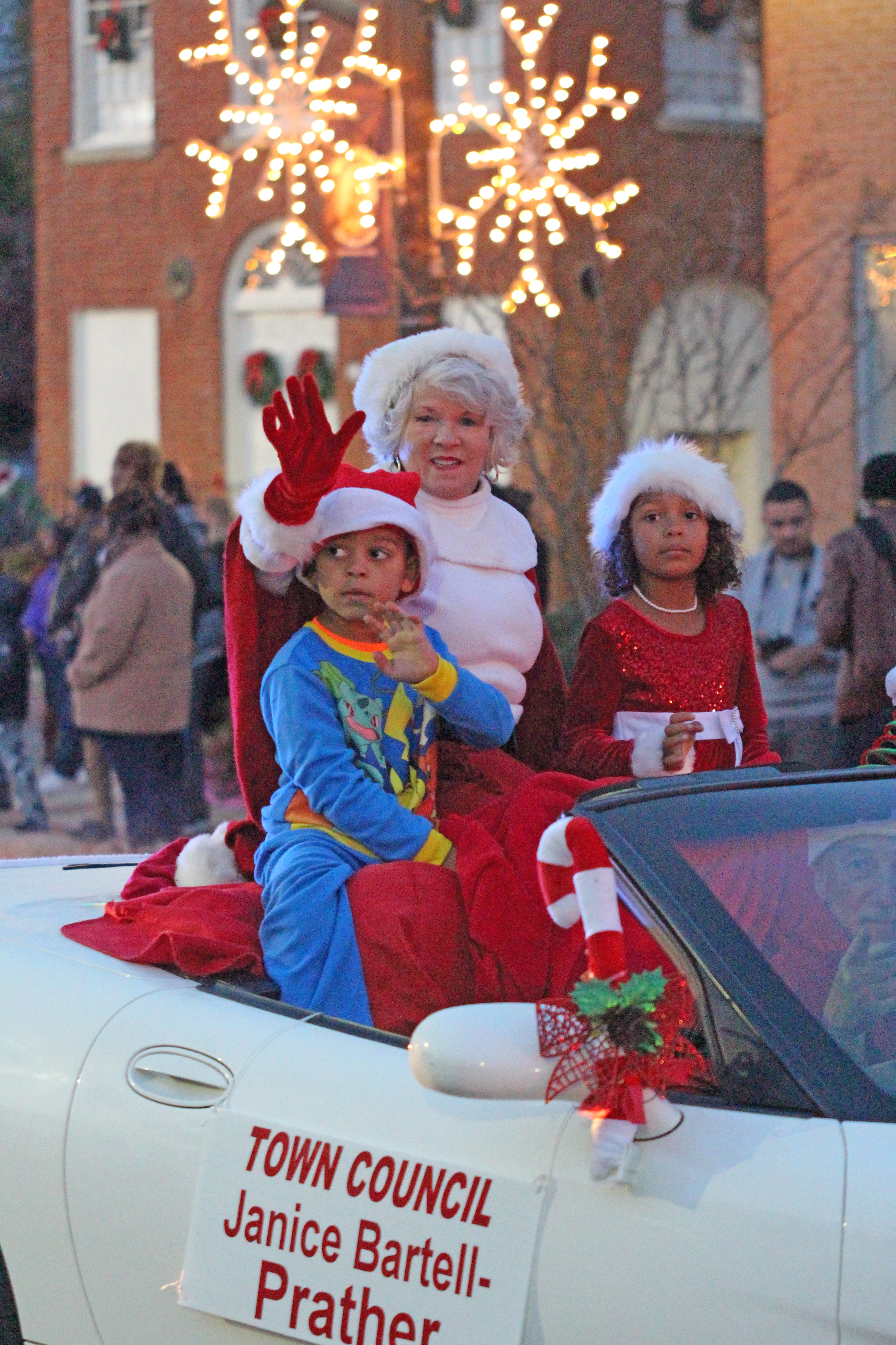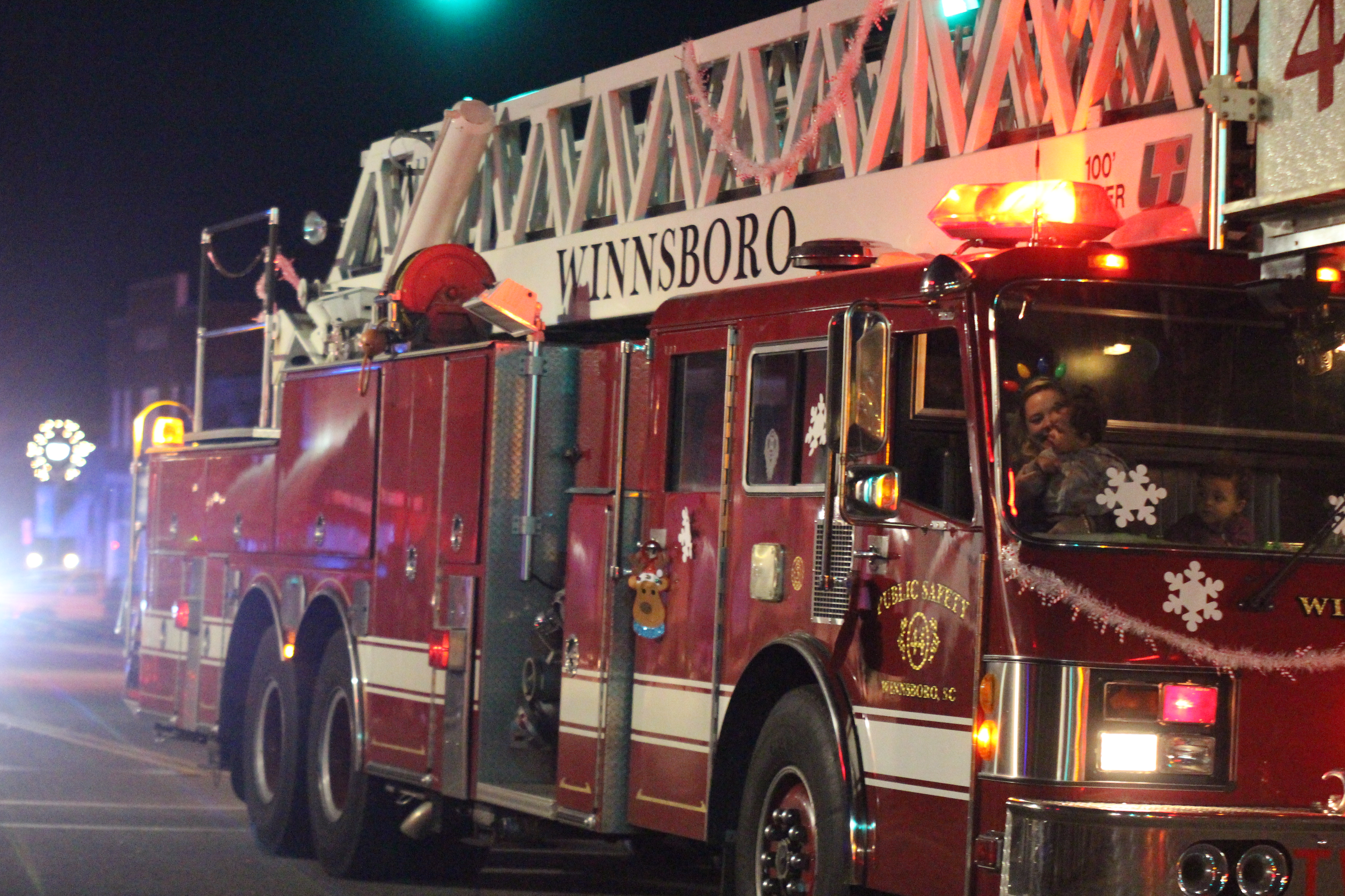 Santa and his elf wave to the crowd gathered for Winnsboro’s evening Christmas Parade on Sunday. | Photos: Martha Ladd