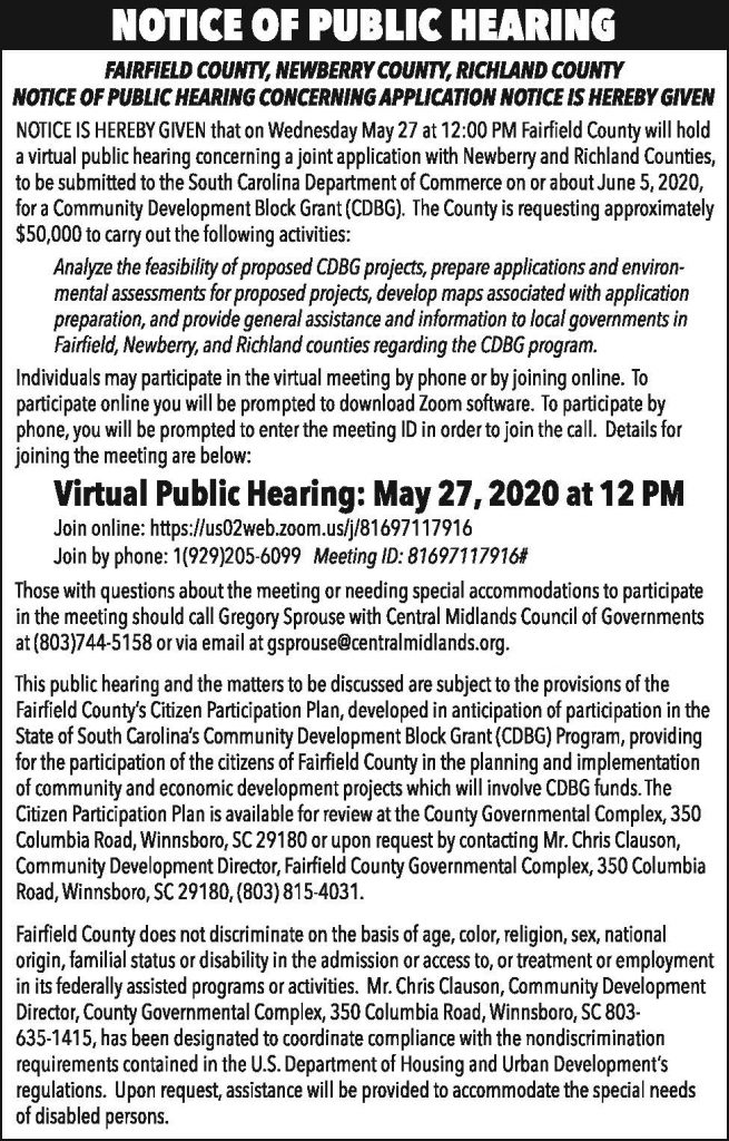 Notice of Public Hearing: CDBG
