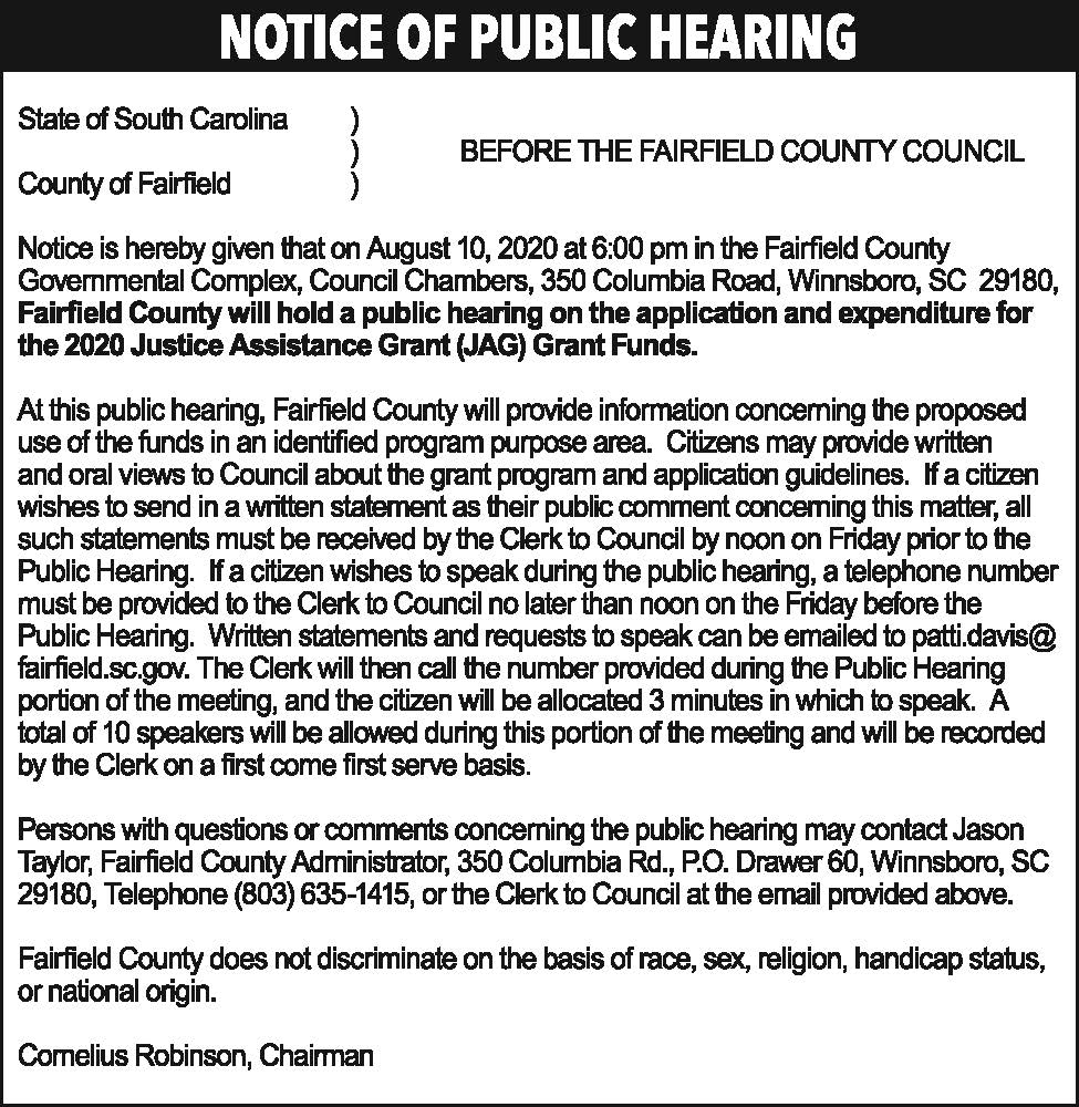 Notice of public Hearing: JAG Funds