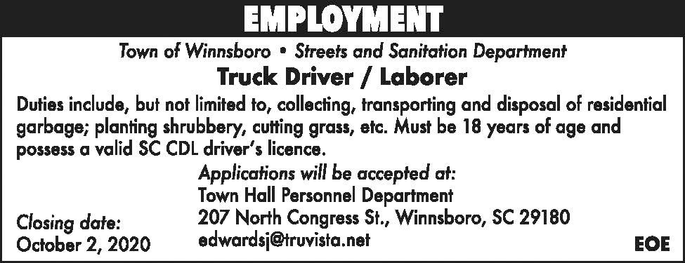 Town of Winnsboro Employment: Truck Driver/Laborer