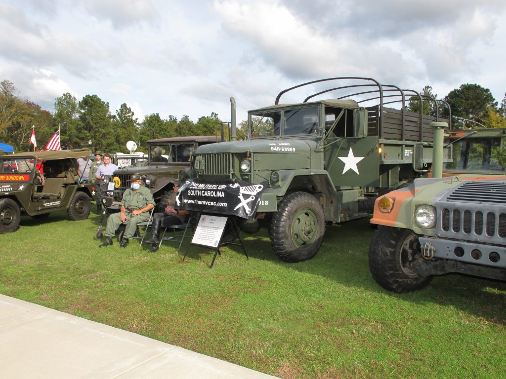 A row of vintage jeeps, trucks and other military vehicles sporting American flags rimmed the park, and military vendors dotted the grounds including an exhibit of a military camp complete with uniformed soldiers, tents, guns and other accouterments of war – even c-rations.