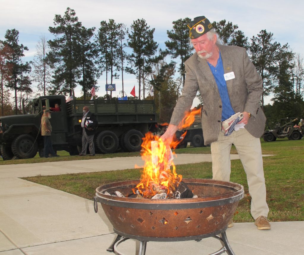 Blythewood Town Councilman and Navy veteran Eddie Baughman ended the program with a flag retirement ceremony.