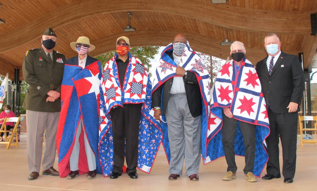Duane Walker, a Quilt of Valor quilter, explained that the quilts presented to the four retired military men were awards for their valor and were to be used for warmth and comfort, not to be folded up and put away for safekeeping.