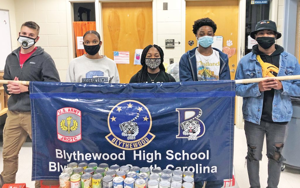 BLYTHEWOOD – As a part of their annual Holiday Wishes campaign, Blythewood High School began collecting canned goods for Christian Assistance Bridge (CAB) on Nov. 30. Each of the three companies in the Bengal Battallion set a goal for every student to donate six canned goods, totaling 640 items. Over the course of three weeks, the Bengal Battalion exceded their goal, collecting 1,330 cans.