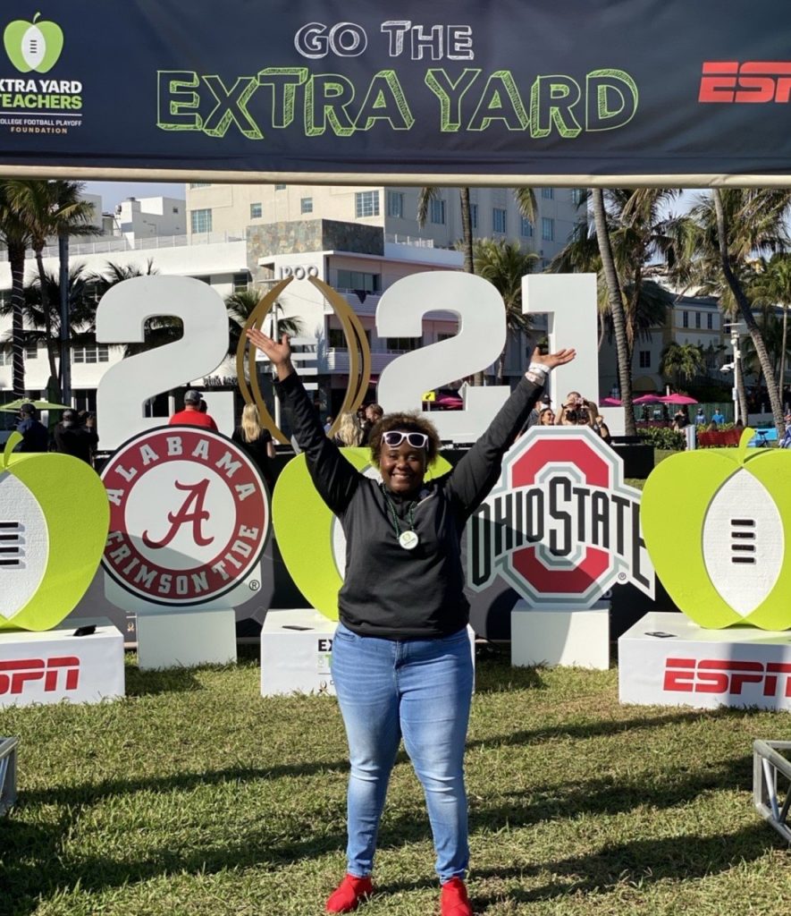 MIAMI, FL – Before kickoff of the 2020 NCAA Football National Championship game featuring Alabama University and Ohio State University, Fairfield Central’s Chanda Jefferson and other state teachers of the year were honored by the College Football Playoff (CFP) Foundation.
