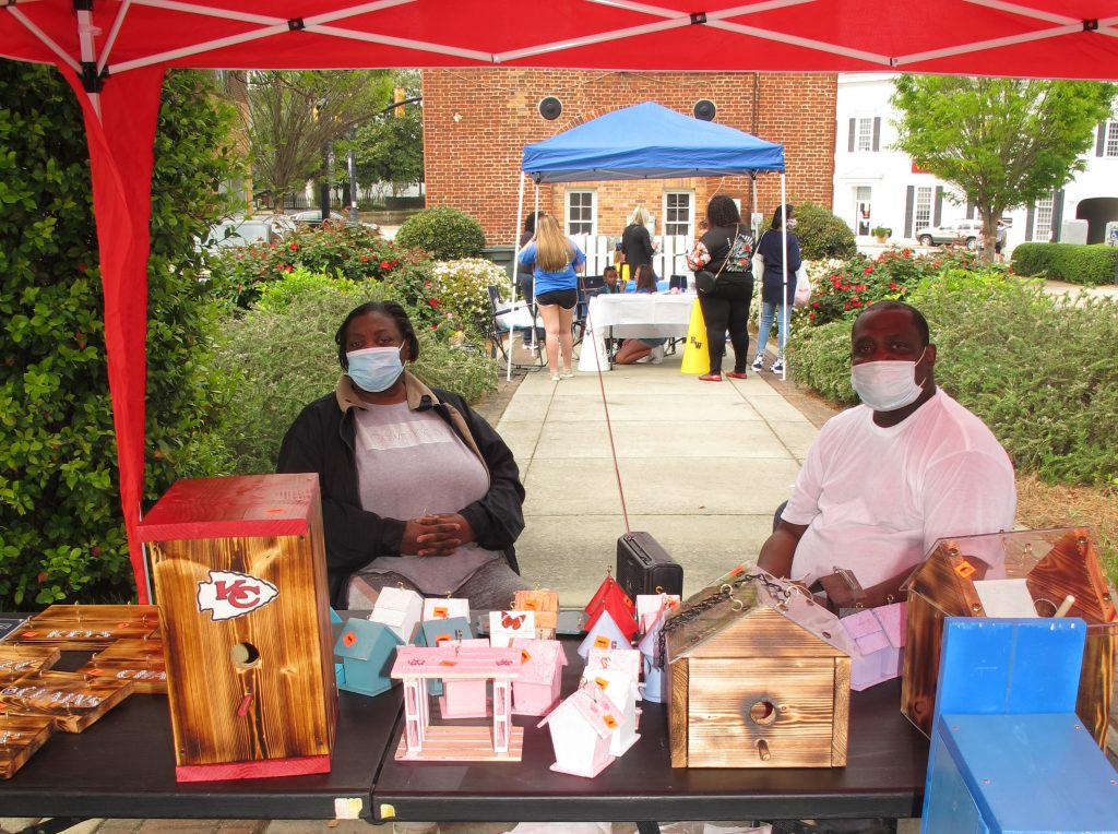 Jeter and Charlene Alston sell Jeter’s homemade bird houses.