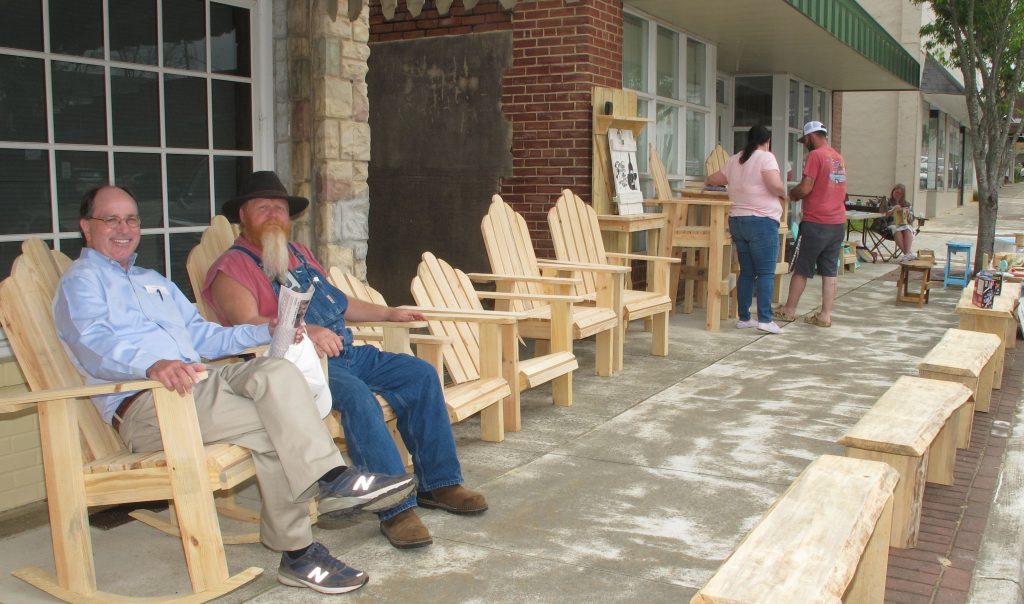 Mayor-elect John McMeekin and Scott Sheperd of Country Island Woodshed at Lake Wateree relax before the crowds arrive.