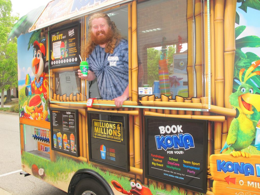 Kona Ice Vendor Brian Jones hawks icy sweet drinks