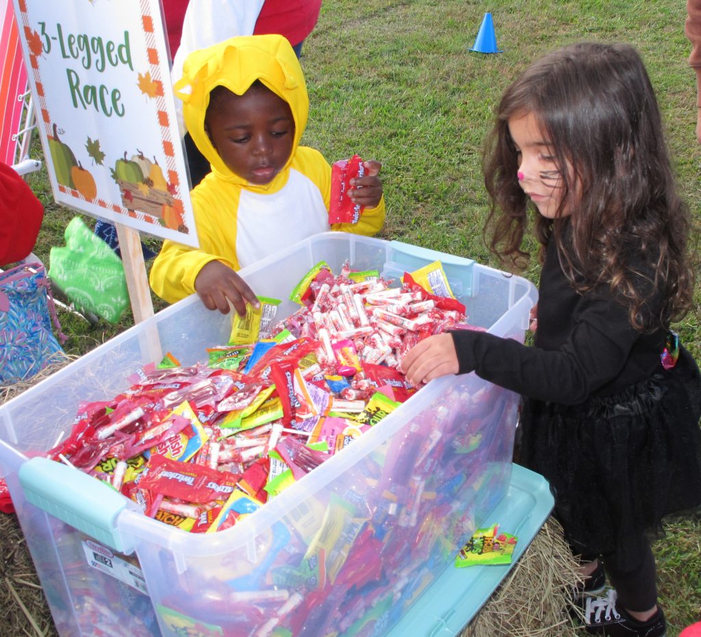 There were games and many big slides and climbing toys over acres of green grass, food vendors, pony rides, face painting, music, treats and lots of fun. Both kids and adults came dressed in costume to participate in three-leg races, sack races, ring toss, corn toss and other games.