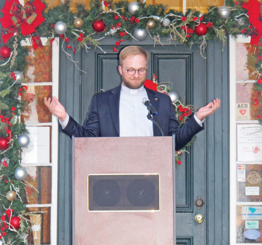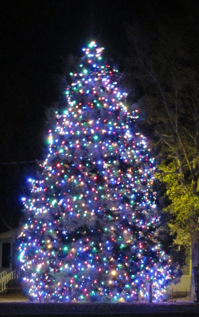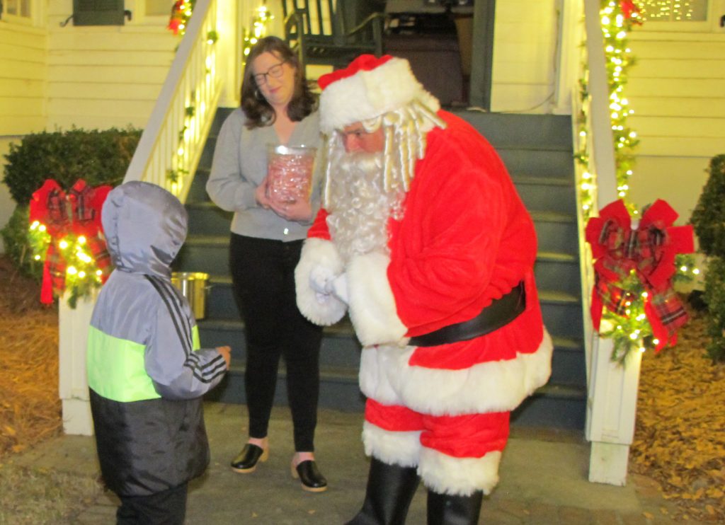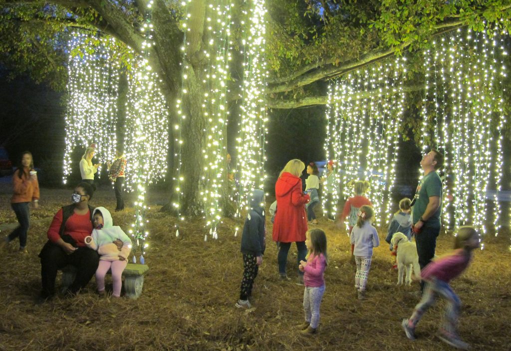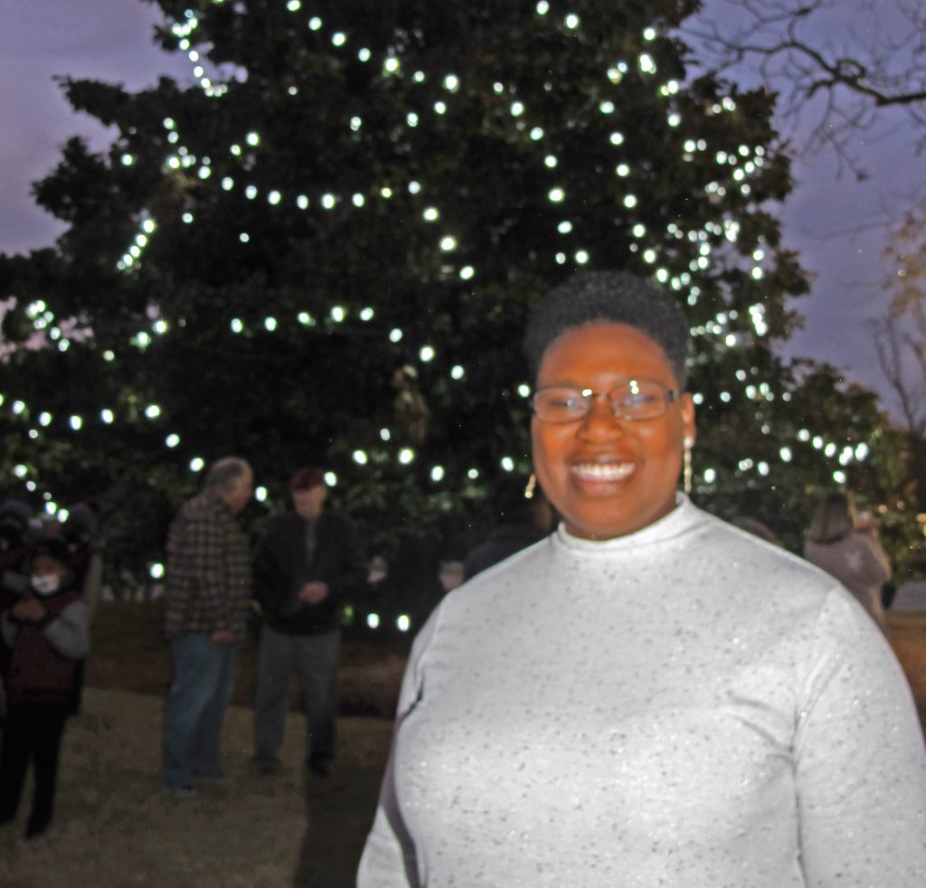 As night fell, Tryphena Cuffy, the 2021 Richland Two District Teacher of the Year, pulled the switch and lit the tree in front of town hall as well as another one across the street. Cuffy then led the audience in singing “We wish you a Merry Christmas.”