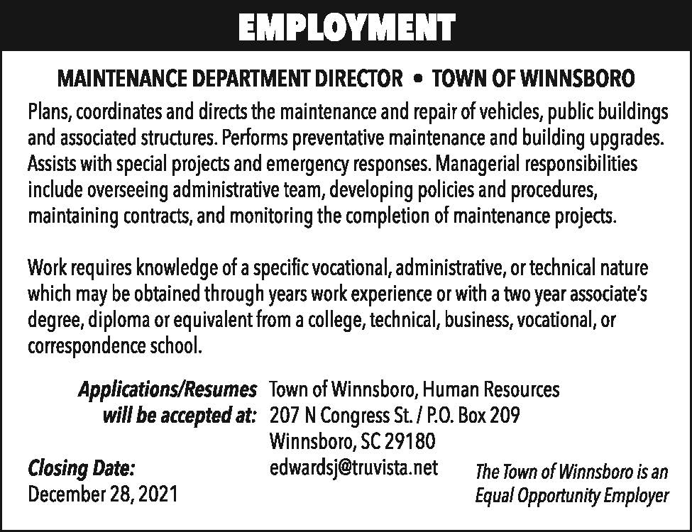 Employment: Maintenance Department Director