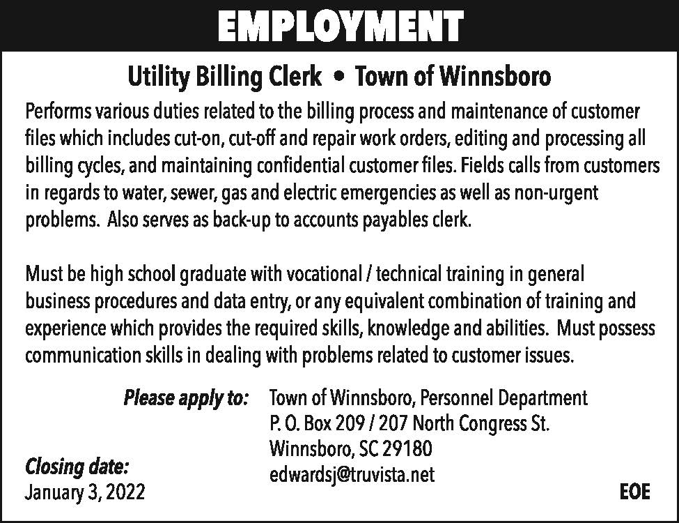 Employment: Utility Billing Clerk