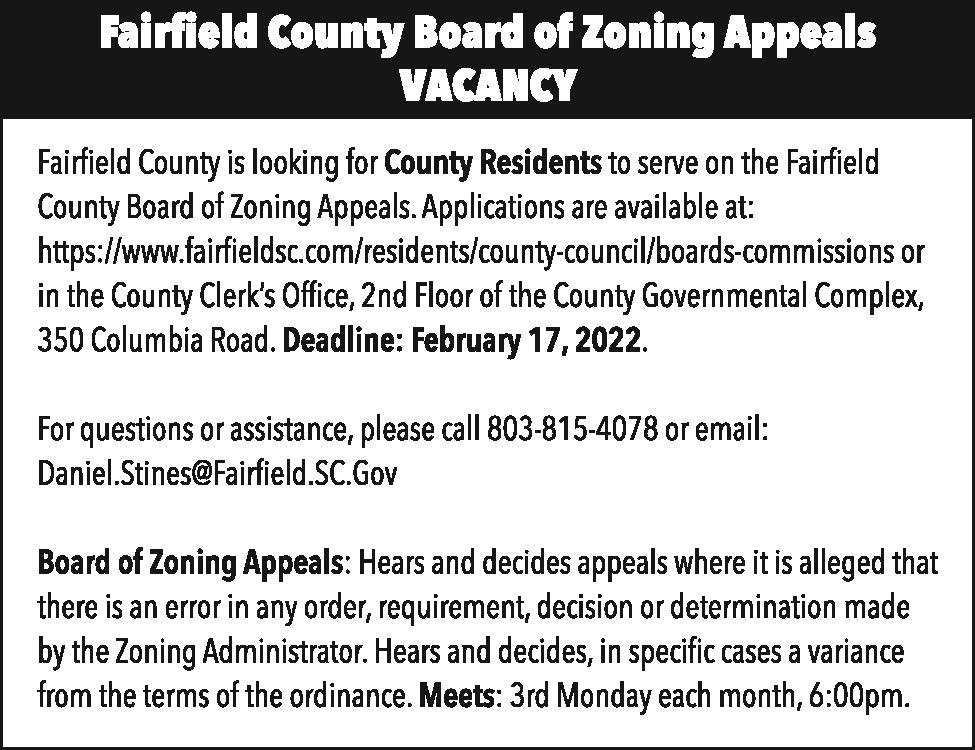 Fairfield County Board of Zoning Appeals Vacancy