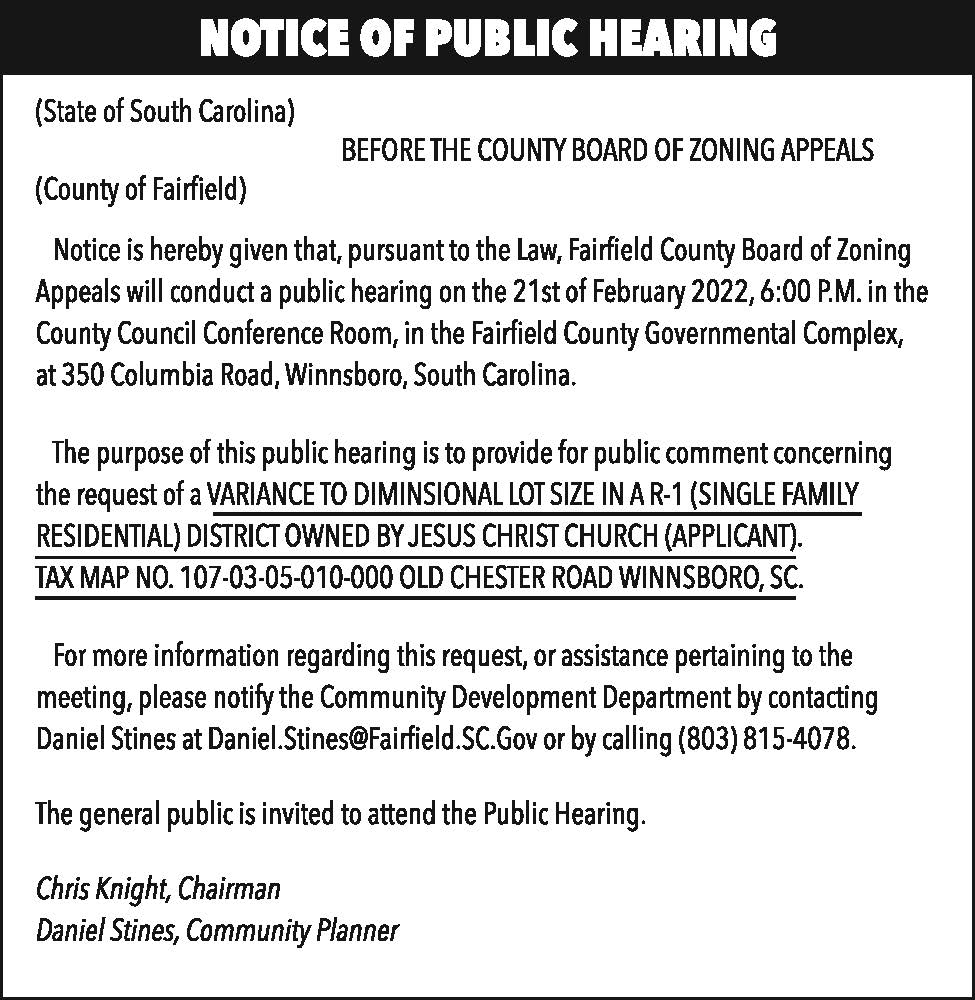 Notice of Public Hearing: Variance to 107-03-05-010-000