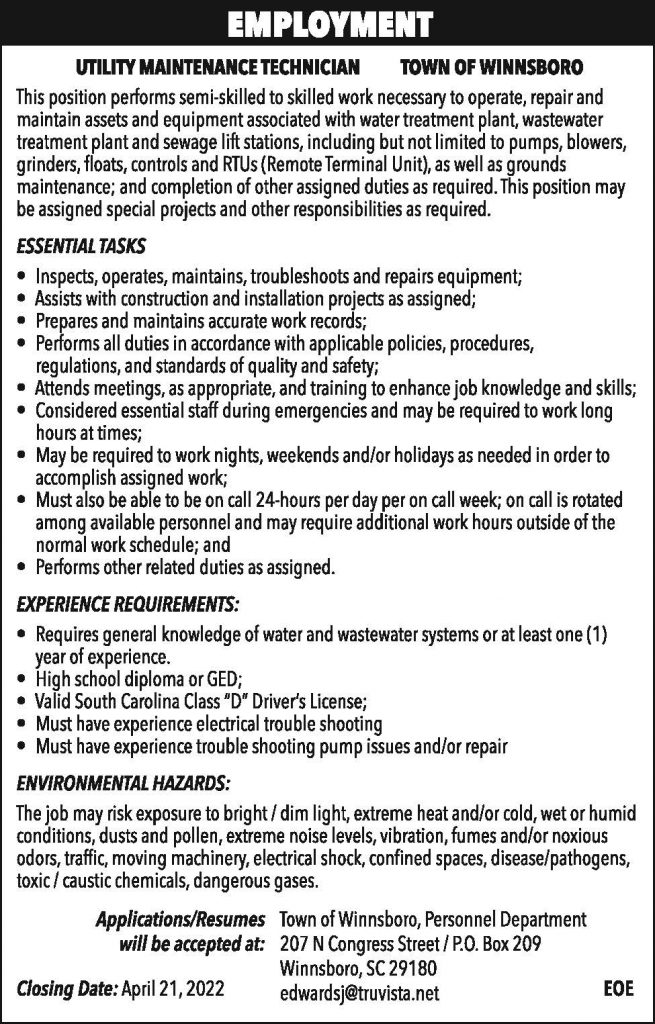 TOW Employment: Utility Maintenance Technician