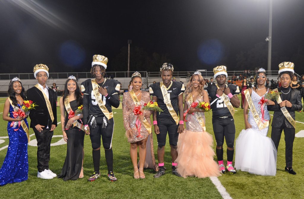Pictured from left: Senior Princess J’Neisha Gibbs, Senior Prince Akeem Davis, Junior Princess Mikiah Jennings, Junior Prince Jalen Swilley, Homecoming Queen Kenya Davis (pictured center), Homecoming King Curtis Sampson (pictured center), Sophomore Princess Mykiah Sampson, Sophomore Prince Steven Gadsden, Freshman Princess Mariya Lyles and Freshman Prince Chantz Hemphill.