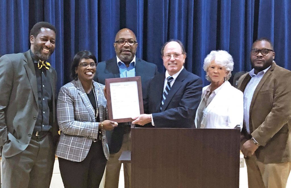 WINNSBORO – During a student assembly on Tuesday in the gymnasium of the Fairfield County Magnet School for Math and Science, the Town of Winnsboro’s mayor and town council members presented the school’s principal, Dr. Shayera Gale Whitfield, with a proclamation for the school being one of five in the state to be named a National Blue Ribbon School.