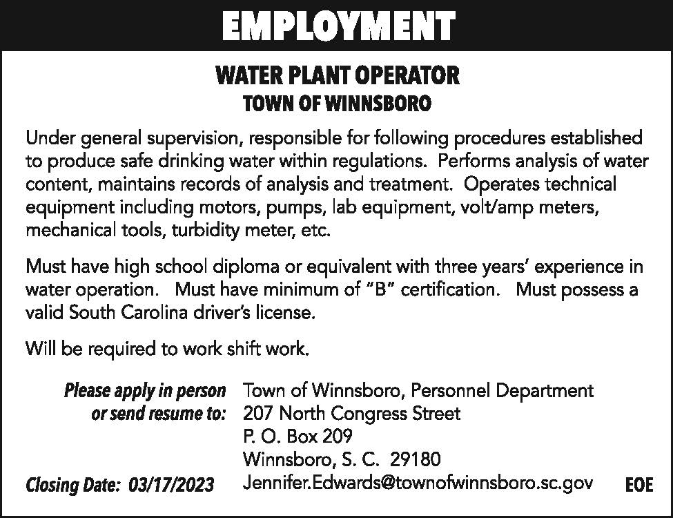Employment: Water Plant Operator