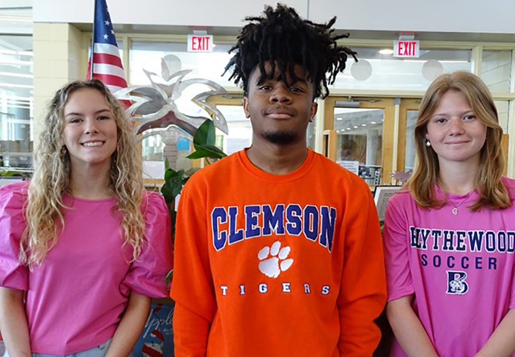 BLYTHEWOOD – Kenneth Cornish, Catherine Hinson, and Jessica Woodley, seniors at Blythewood High School, have been awarded the prestigious South Carolina Teaching Fellowship and will each receive up to $24,000 in yearly scholarships to attend a Teaching Fellows Institution in South Carolina.
