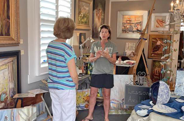 Linda Haslett, left, and vendor Michelle Taylor