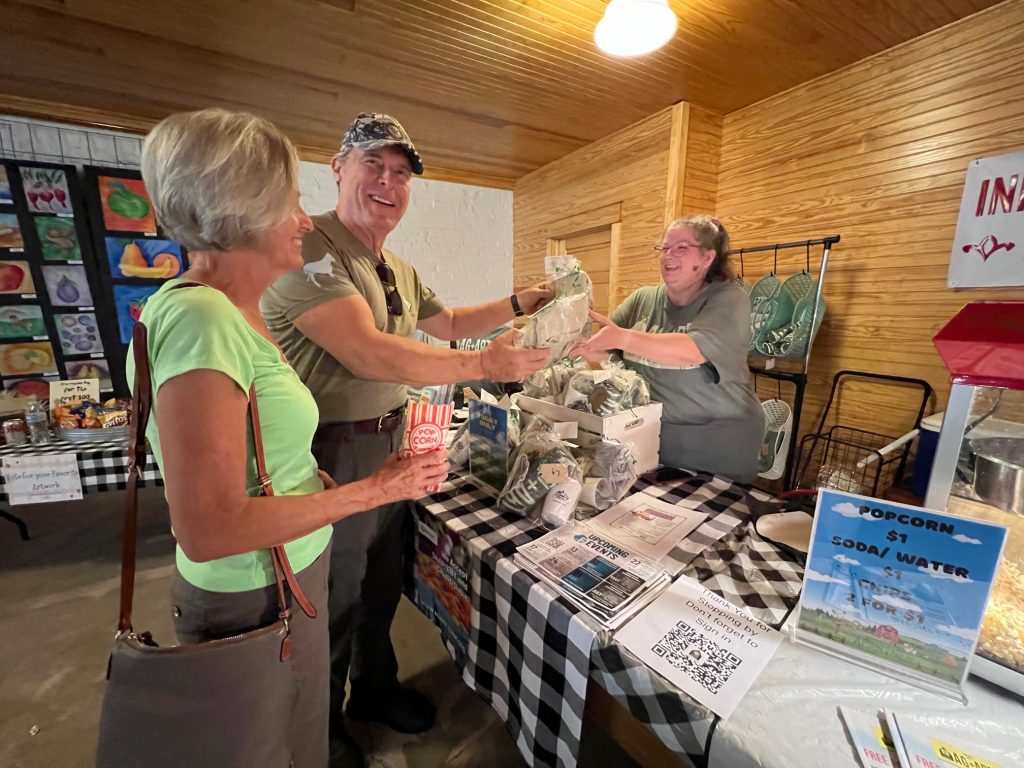 Jeff and Terry Schaffer purchase t-shirts and popcorn.