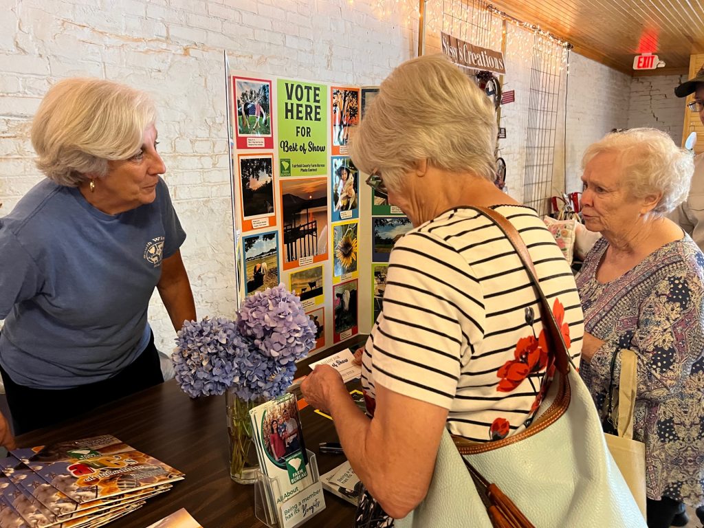 Martha Ladd, left, registers votes for Farm Bureau Photo Contest.