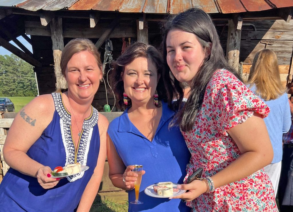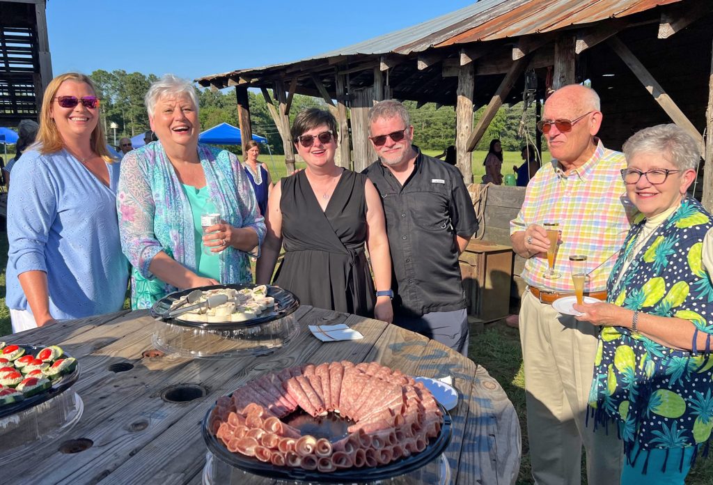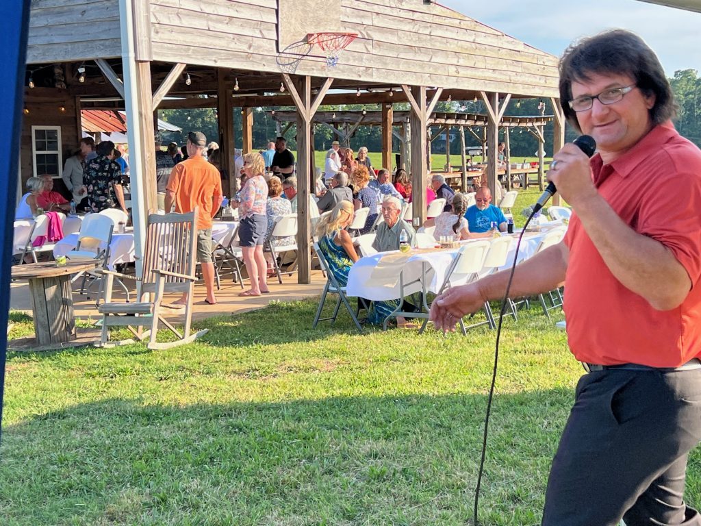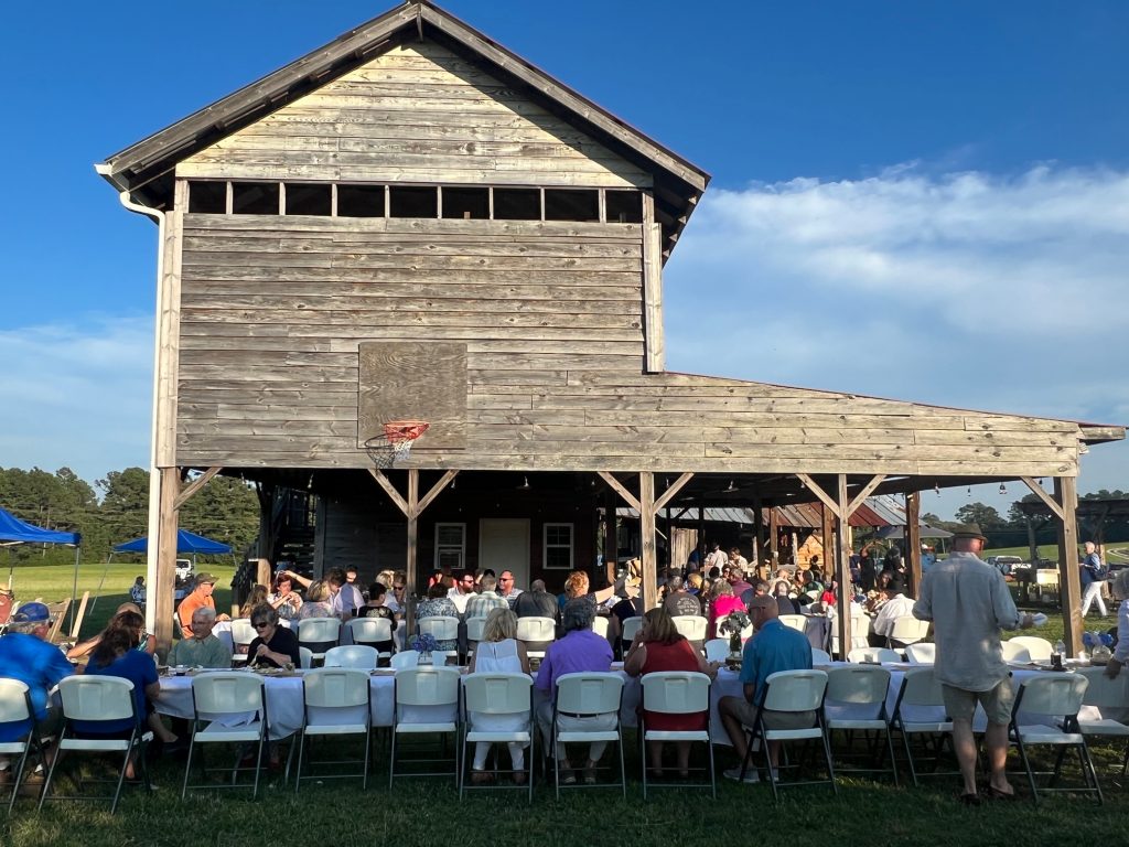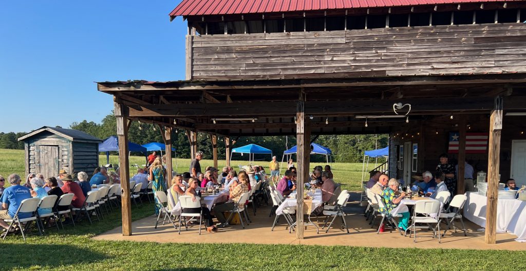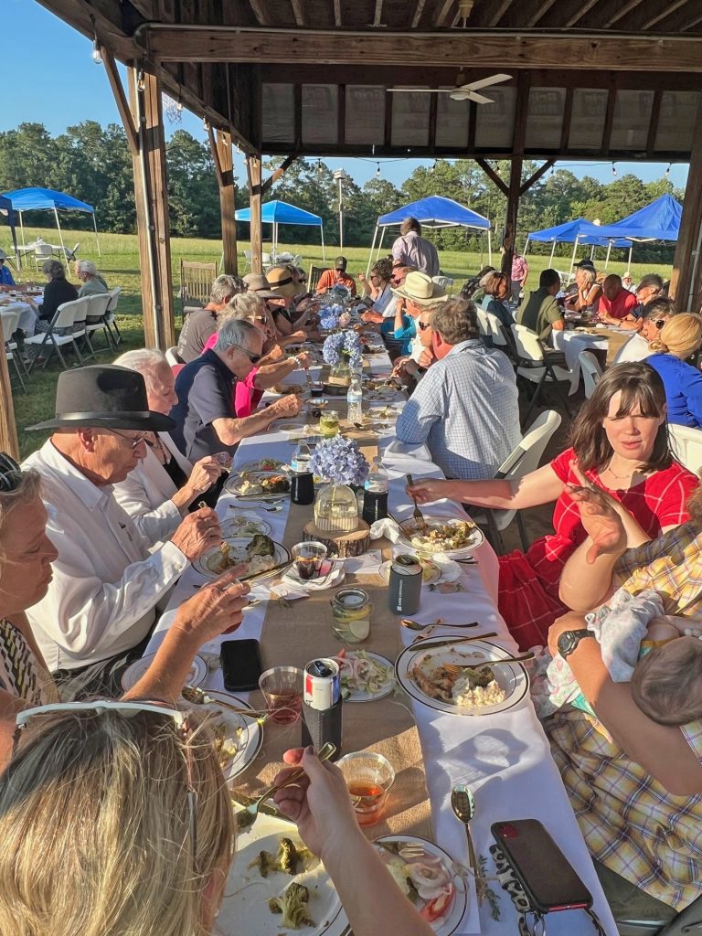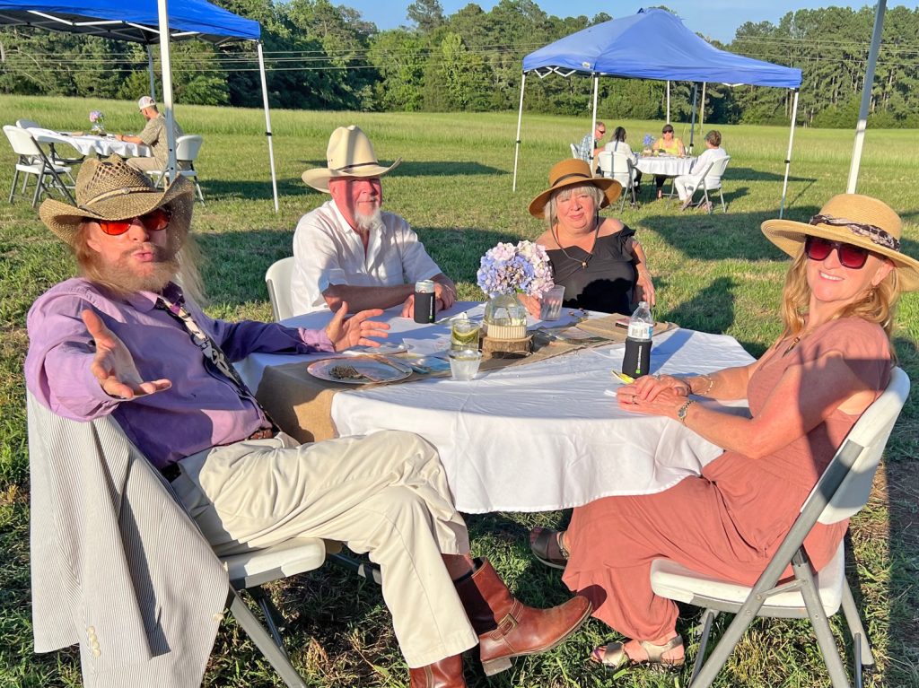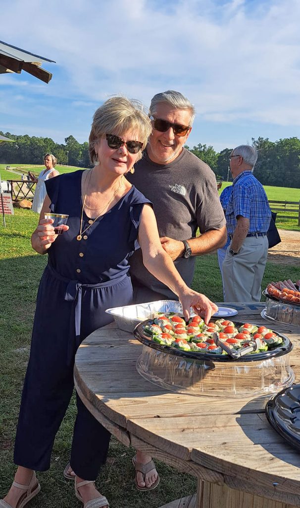 More than 135 guests gathered on Katherine and Gordon Doty’s farm on Hwy 34 just outside of Winnsboro, where they enjoyed a dinner catered by Sarah ‘n Geo’s, topped off with wine and strawberry-rhubarb pie. Will Hobgood entertained, the weather was perfect and the farm animals were home on the range.