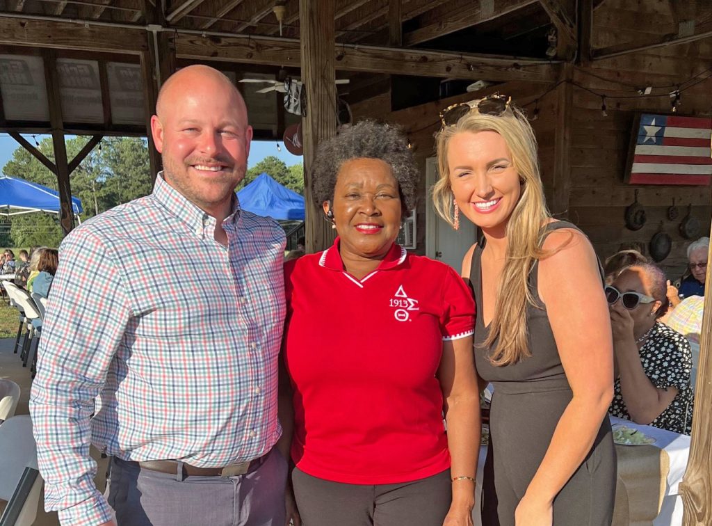 House Rep Annie McDaniel, center, Winnsboro Town Councilman Jae Burroughs and wife Chelsea Burroughs