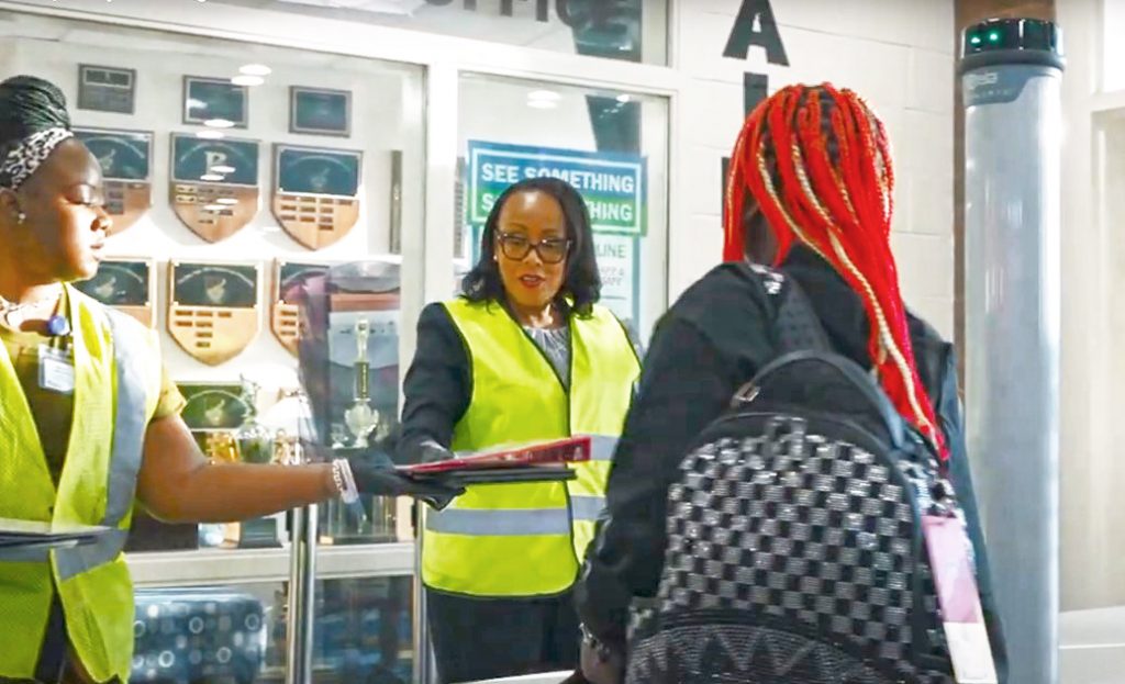 “We recognize that we have to have a very rigid plan to make sure that we’re safe. Metal detectors are needed. We are prepared for the volume of students that come in. This is our first day, it’s a new routine, but we’re off to a great start.”