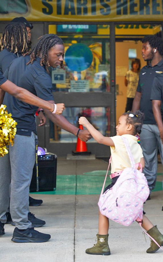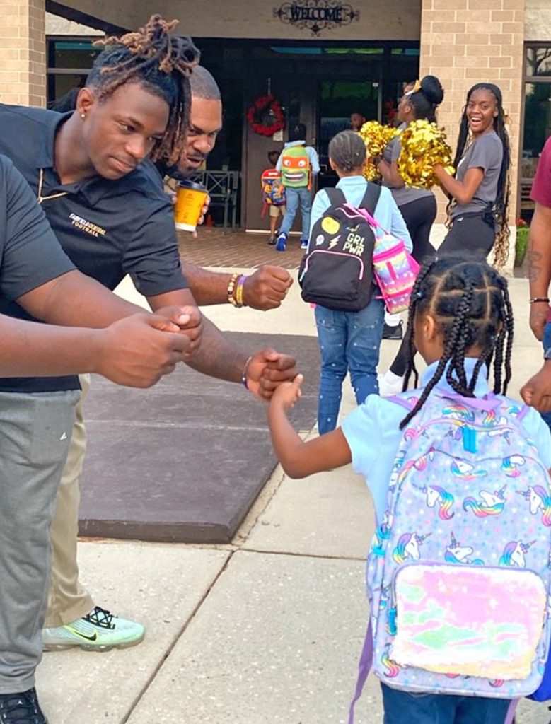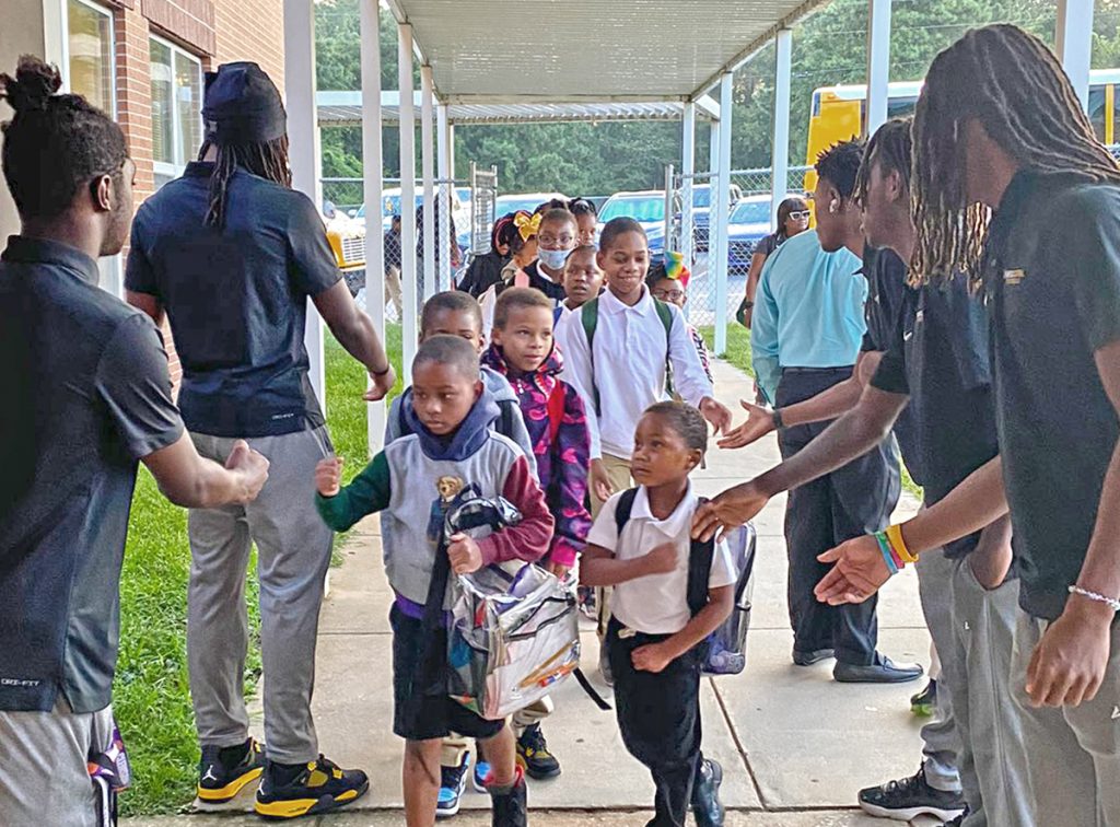 FAIRFIELD COUNTY – Fairfield County School District’s youngest students have been in for a treat at Friday morning dropoffs this year as Fairfield Central High School’s varsity football players, cheerleaders and their coaches have rotated through the district to greet them.