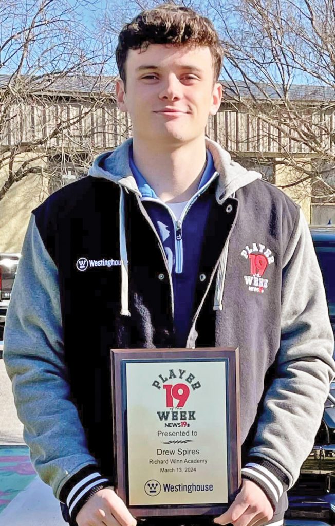 WINNSBORO – Richard Winn Academy senior Drew Spires was interviewed by WLTX on Tuesday in recognition of being named the station’s Player of the Week, just following the conclusion of Spires’ senior basketball season.