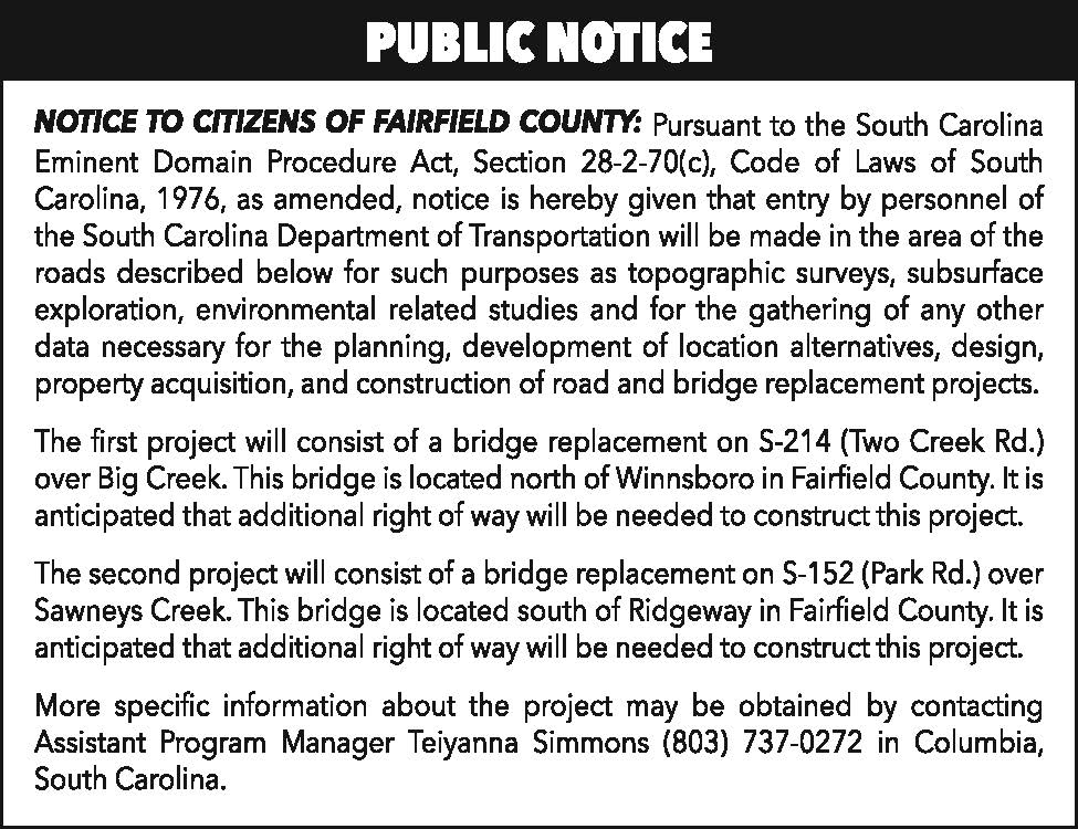 Public Notice: SCDOT bridge replacements