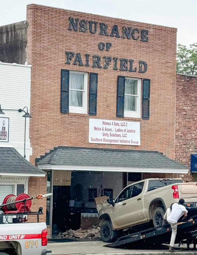 WINNSBORO – Shortly before noon on Tuesday, Aug. 13, a pickup truck smashed into the front of a building at 116 S. Congress Street, in downtown Winnsboro.