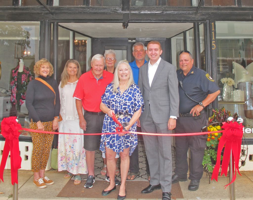 RIDGEWAY – Tina Johnson (center) cut the ribbon for the re-opening of her Over The Top Boutique on Saturday in downtown Ridgeway.