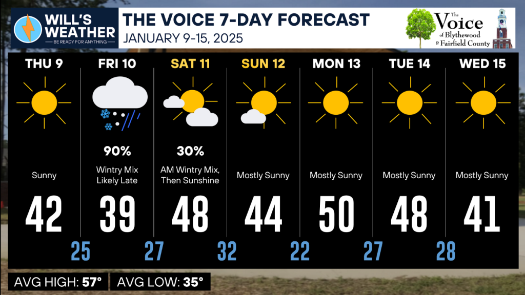 As far as winter weather is concerned, there is a very fine line between snow/sleet and cold rain. There is the potential for a wintry mix late Friday and into Saturday morning, mainly for Fairfield County. (Read about the potential here.)