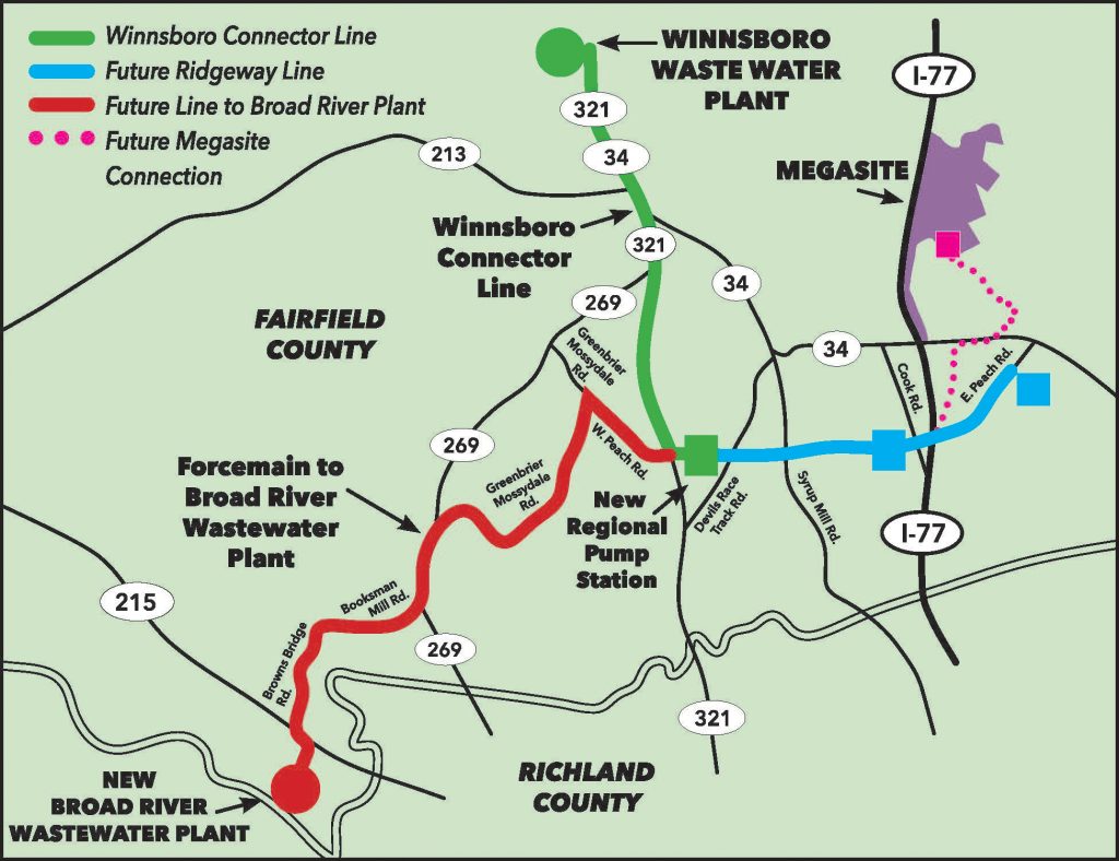 When completed, the line will supplement some of the wastewater capacity needs of Fairfield County with the connector line to the Winnsboro Wastewater Treatment Plant.