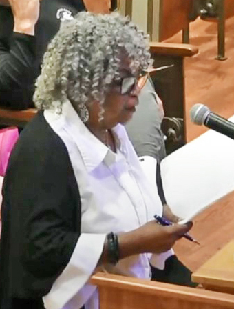 “Voting is the language of American democracy. Voting is at the core of what it means to be American,” Jacobs said, addressing Gilbert. “Your decision to exclude our [district’s] elected official is undemocratic.” She then held up a petition signed by hundreds of members of District 3, specifically Feasterville and Blair, calling for Swearingen to be treated equally.