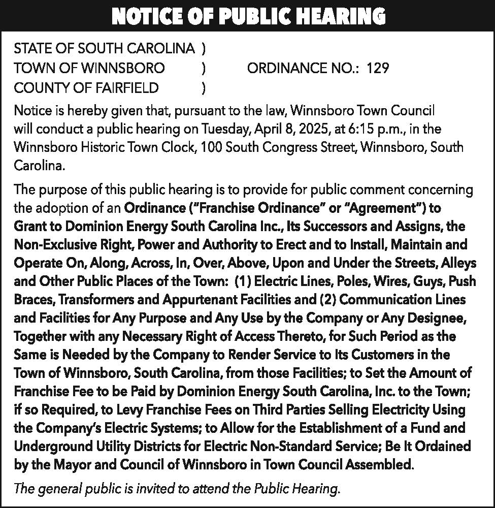 Notice of Public Hearing: Town of Winnsboro