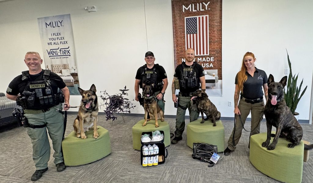 WINNSBORO – HealthcareSC presented K9 Pawprint Oxygen kits and water showers to the Fairfield County Sheriff’s Office’s K9 Unit during an informal ceremony Wed, July 23 at the MlilyUSA’s manufacturing facility in Winnsboro. MlilyUSA is the parent company of HealthcareSC.