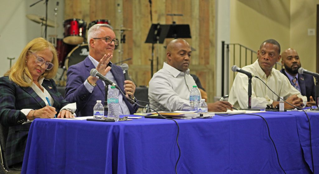 The panelists featured Trish Hovis, incumbent Rich McKenrick, Corey Mitchell, Ja’maal Mosely, and Marcus Taylor, each responding to questions submitted by the audience. Questions could be asked of all the candidates or just one.
