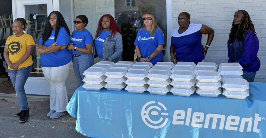WINNSBORO – Element Electronics hosted an Element Cares event two weeks ago, distributing 100 meals in downtown Winnsboro.