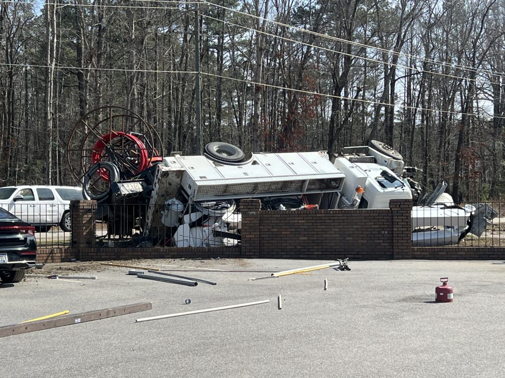 Unit 5 flipped on its side in front of Blythewood Oil. | Barbara Ball