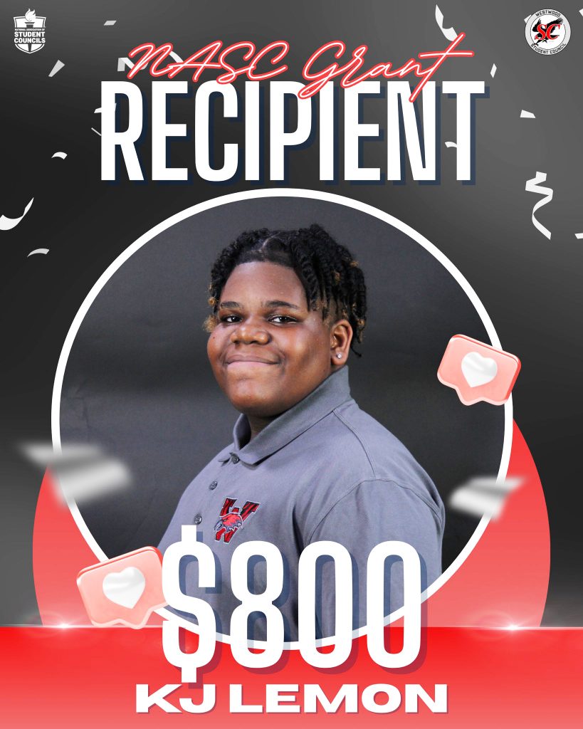 Lemon was awarded an $800 NASC grant. This project-focused grant will be used to support a major upcoming school event: the Sophomore House’s annual Special Education Prom. The event’s goal is to ensure all students have the opportunity to enjoy a traditional high school milestone in an inclusive, supportive environment.