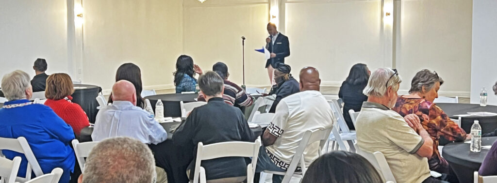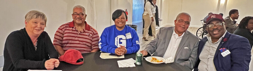 Brandon Henderson, Chair of the Fairfield County Democratic Party, led the event. From left: Fairfield County Treasurer Norman Branham, Deputy Treasurer Rhonda Trapp, and Administrative Assistant Kiera Daniels. Ridgeway Mayor Pro Tem Belva Bush Belton and Fairfield County School Board Trustee Darreyl Davis. From left, Patty Reed, a former arts teacher at the Career Center, Jenkinsville Mayor Greg Ginyard, Fairfield County School Board trustee Sylvia Harrison, former County Councilman Moses Bell, and Fairfield County School Board Chair Henry Miller.