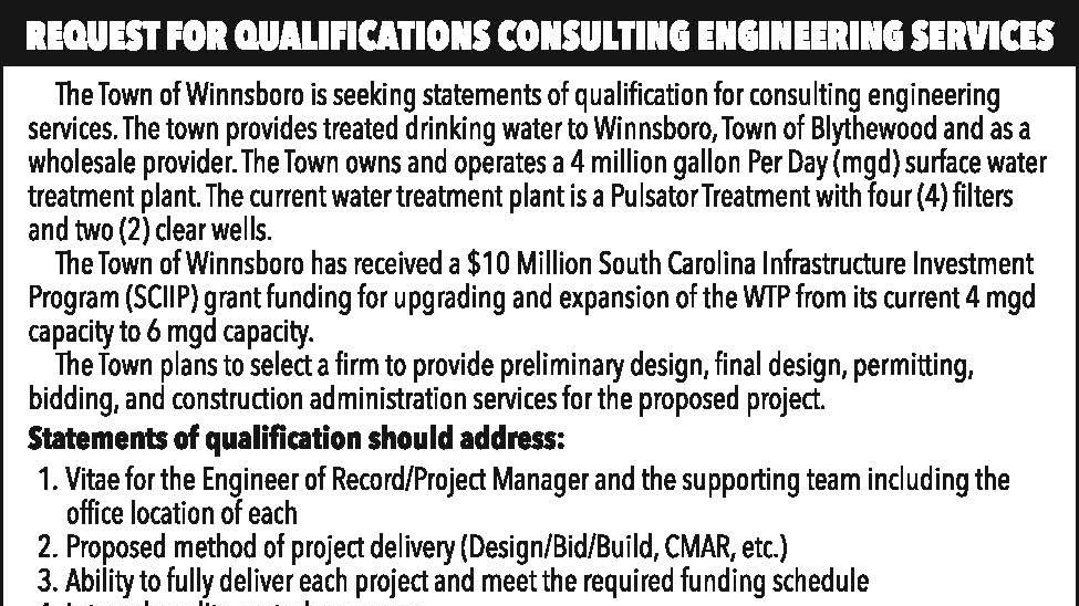 Town of Winnsboro Request for Qualifications for Consultign Engineering Services