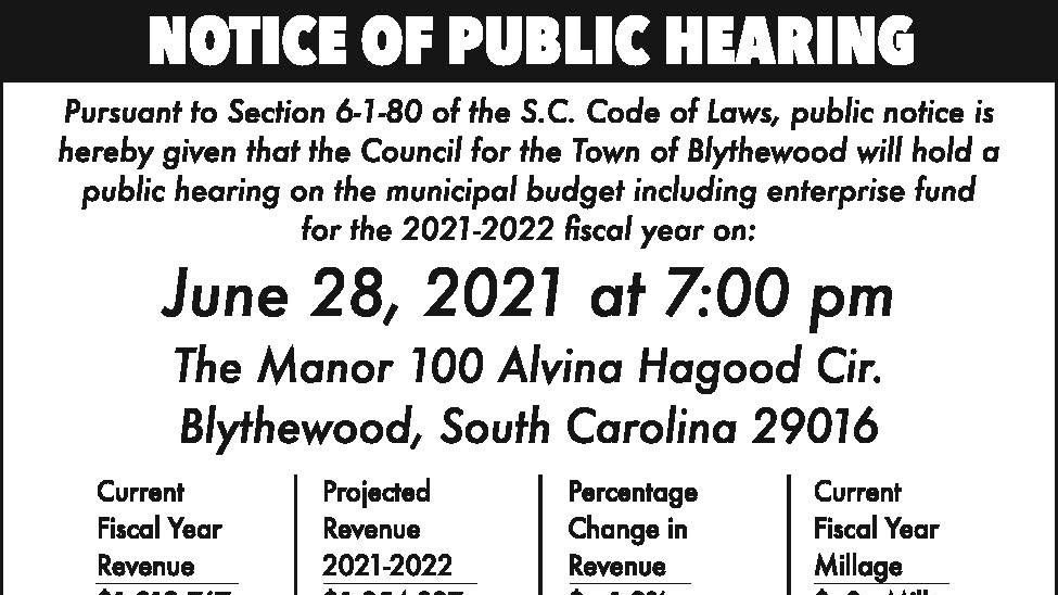 Notice of Public Hearing: Town of Blythewood