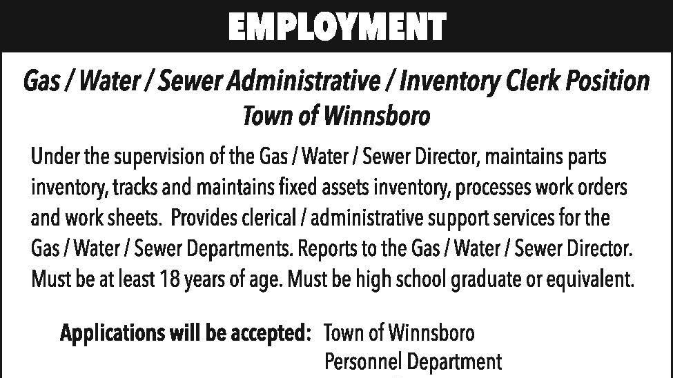Employment: Gas/Water/Sewer Administrative/Inventory Clerk