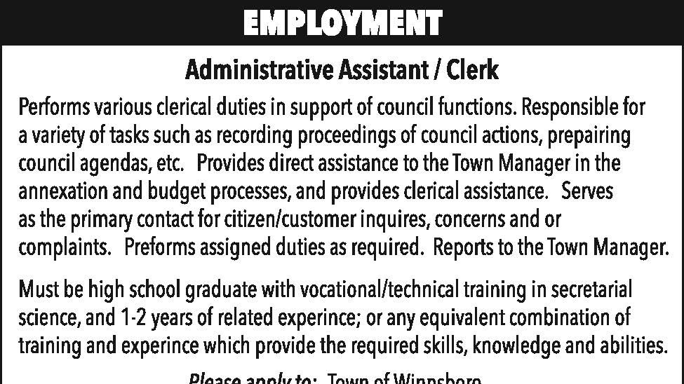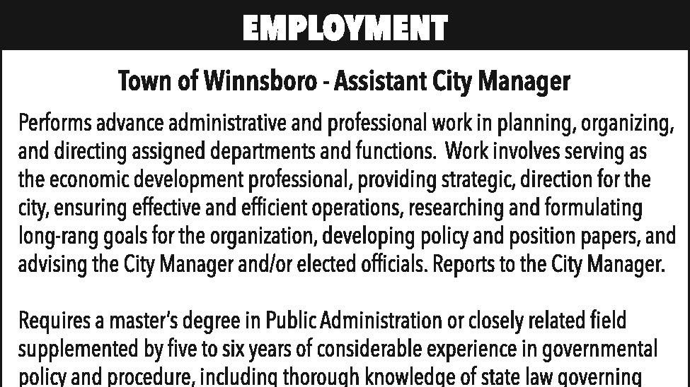 Employment: Town of Winnsboro Assistant City Manager