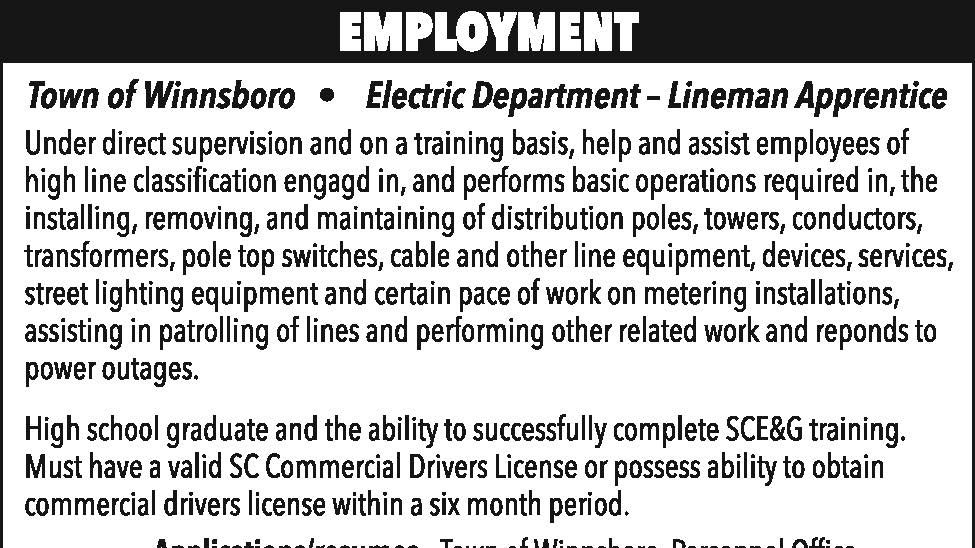 Employment: Electric Department – Lineman Apprentice