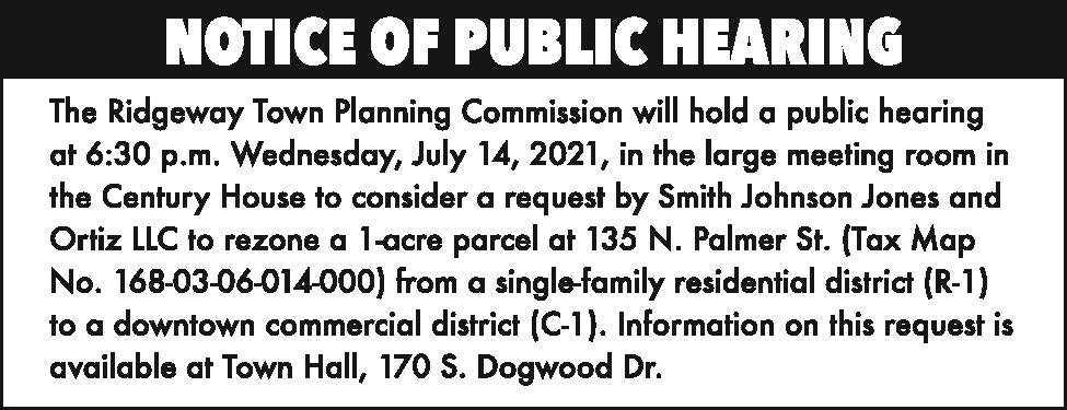 Notice of Public Hearing: RW Town Planning Commission